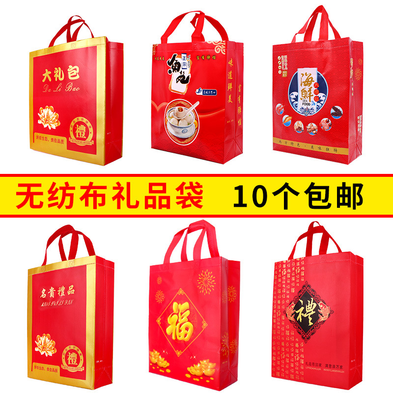 ギフトバッグ、ポータブル不織布福袋、赤いシーフード新年ギフトバッグ、フィッシュボール、タバコ、ワイン、お祝いバッグ、密封