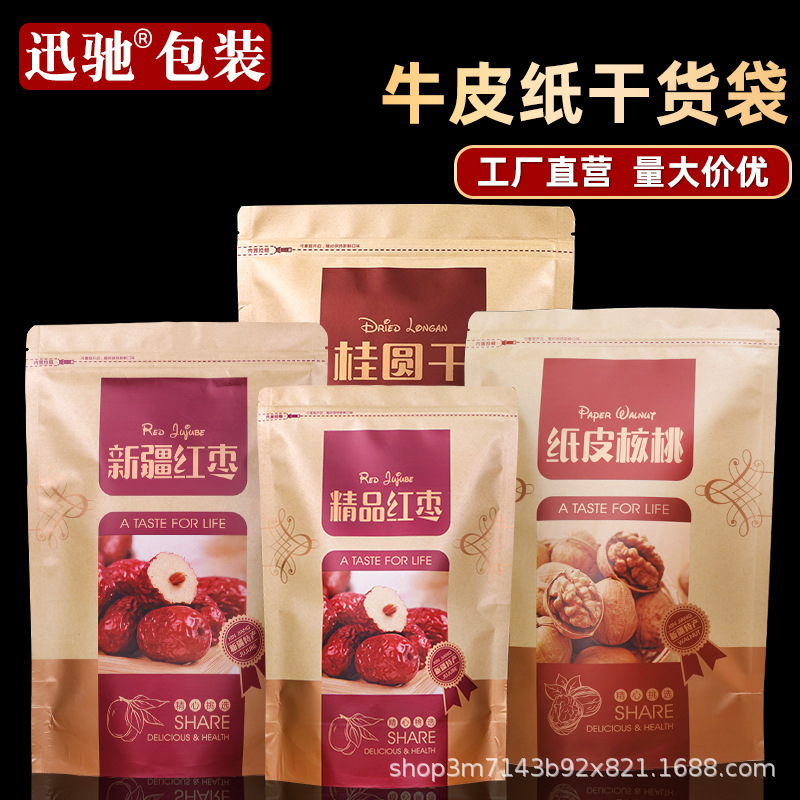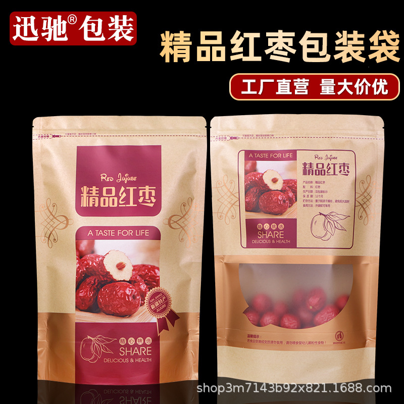 逸品の赤いナツメの包装袋の牛皮の紙袋の自封袋の500g新疆の特産品の袋の乾物の密封袋の卸売り
