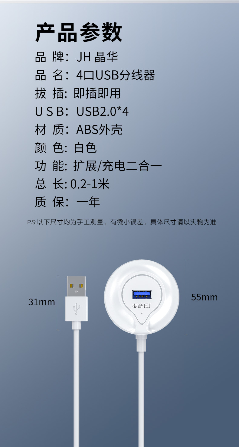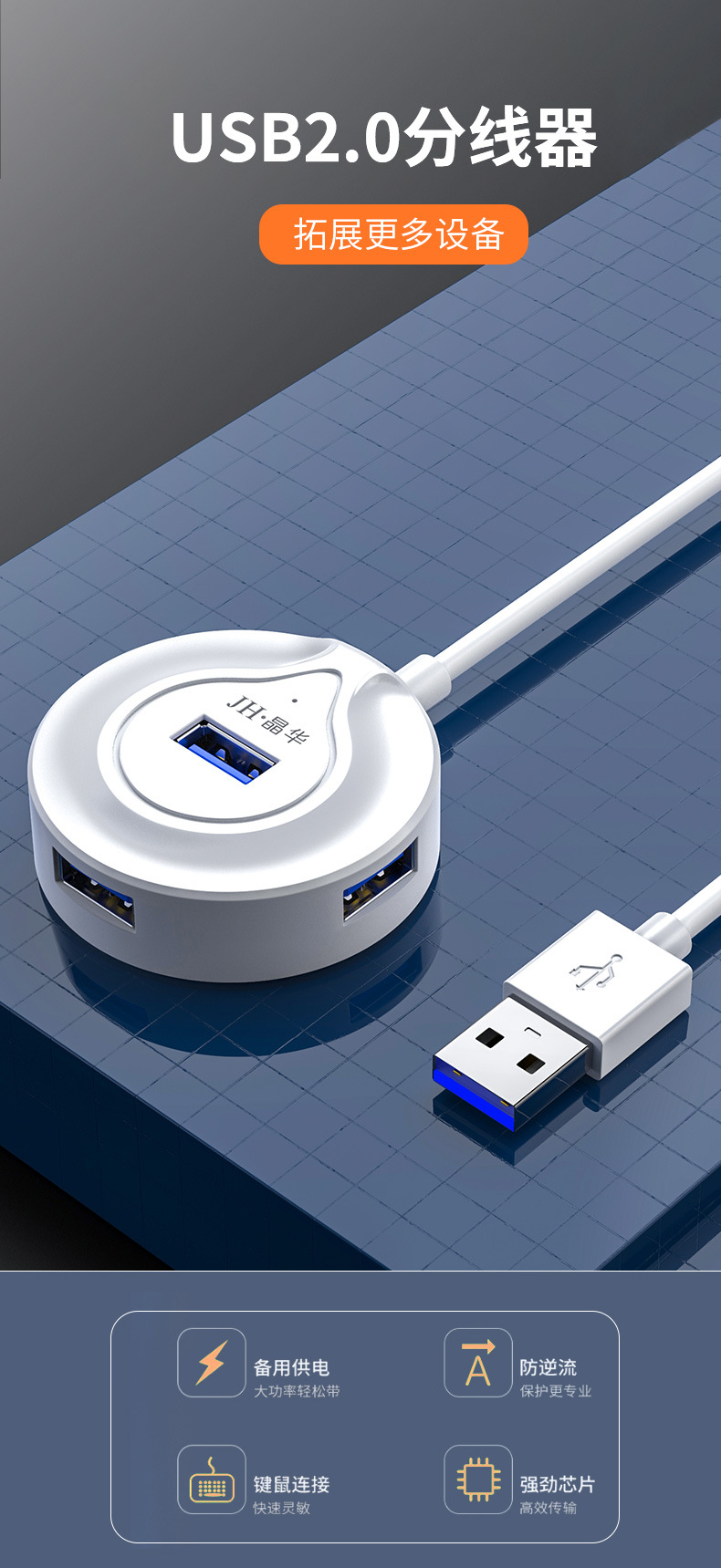 晶華usb多口拡張器パソコンのノートパソコンのキーボードマウスuディスク四合一セパレータ0.0多口コンセント