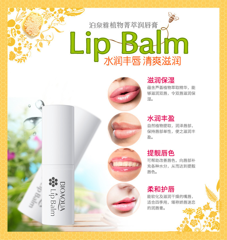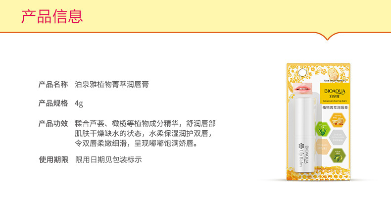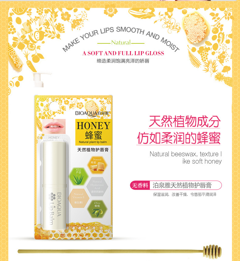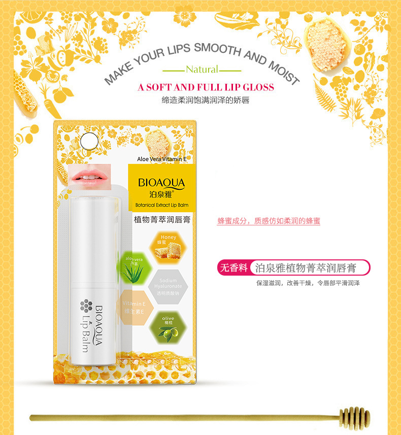 泊泉雅唇膏蜂蜜唇膏アロエ唇膏植物潤唇膏潤い保湿補水防乾裂潤唇膏