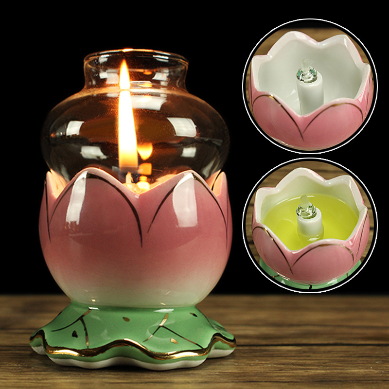 酥油食用油蓮油ランプ液体酥油ランプホルダー長灯常灯葉付き蓮灯陶器仏具灯