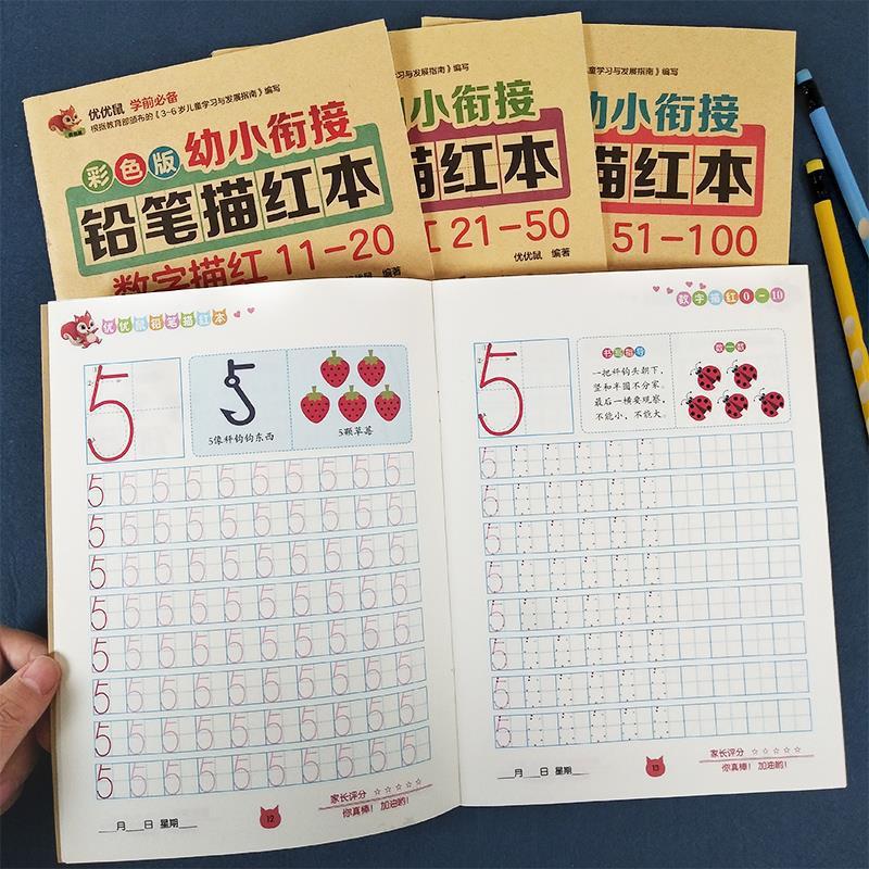 3-8歳の幼稚園の小さい中で大きいクラスの鉛筆の数字は赤い本の子供の初心者を描いて字の本を練習します。