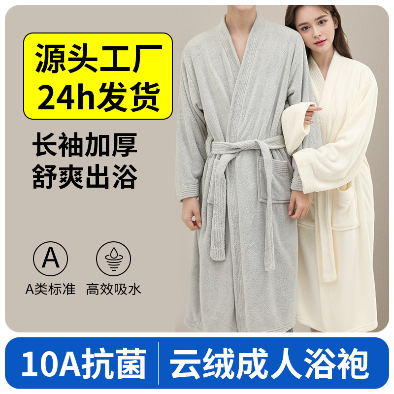 云绒成人浴袍女10A抗菌吸水速干情侣浴衣秋冬季睡袍长袖加厚睡衣