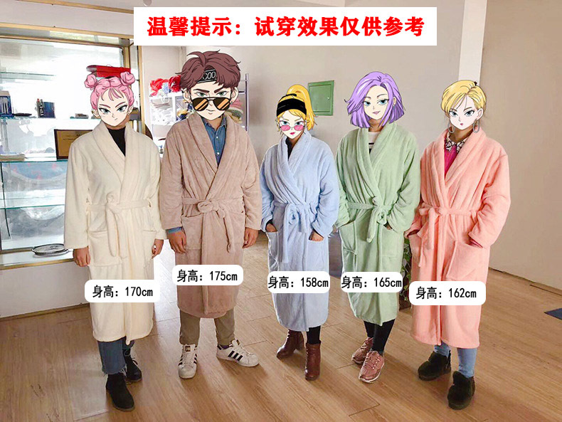 秋冬季加厚成人浴袍女珊瑚绒睡衣情侣加长款大码浴衣舒适睡袍保暖