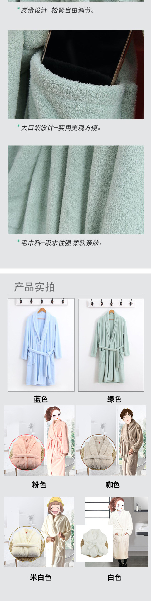 秋冬用バスローブ 厚手コーラルベルベット 吸水性 男女兼用 家庭用 大人用 ホテル用 バスローブ 美容院用 厚手保温