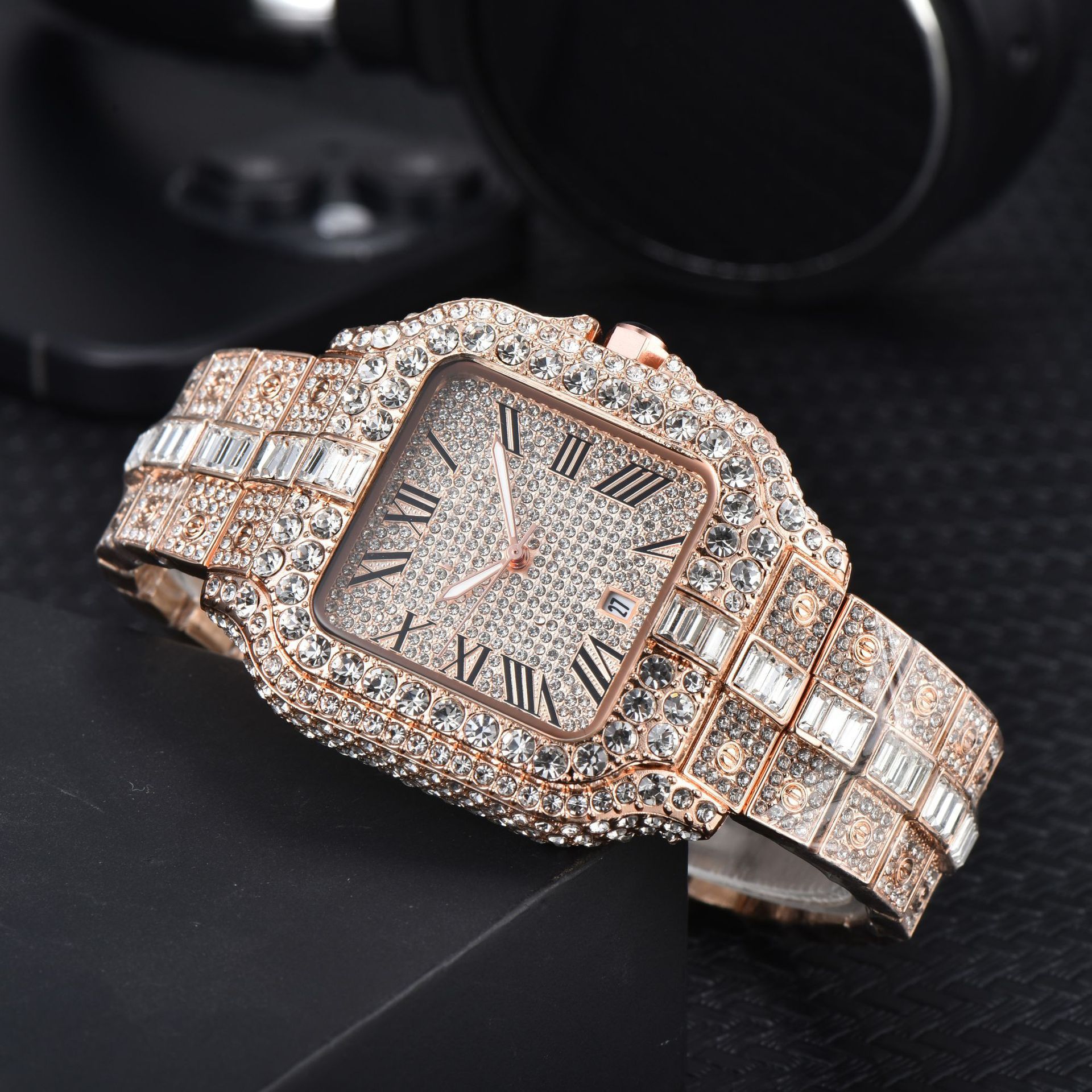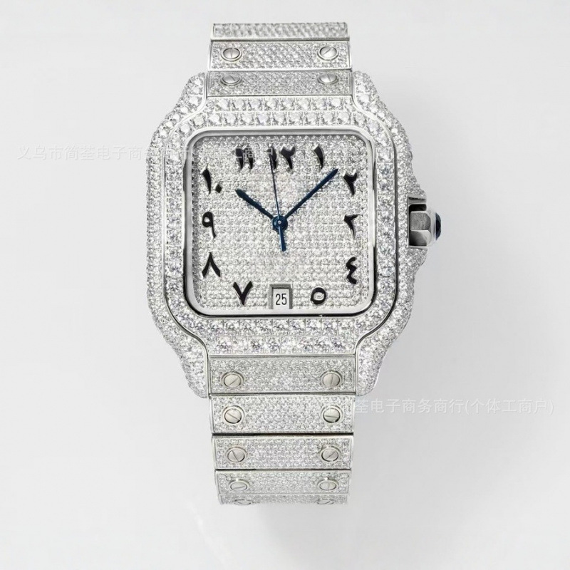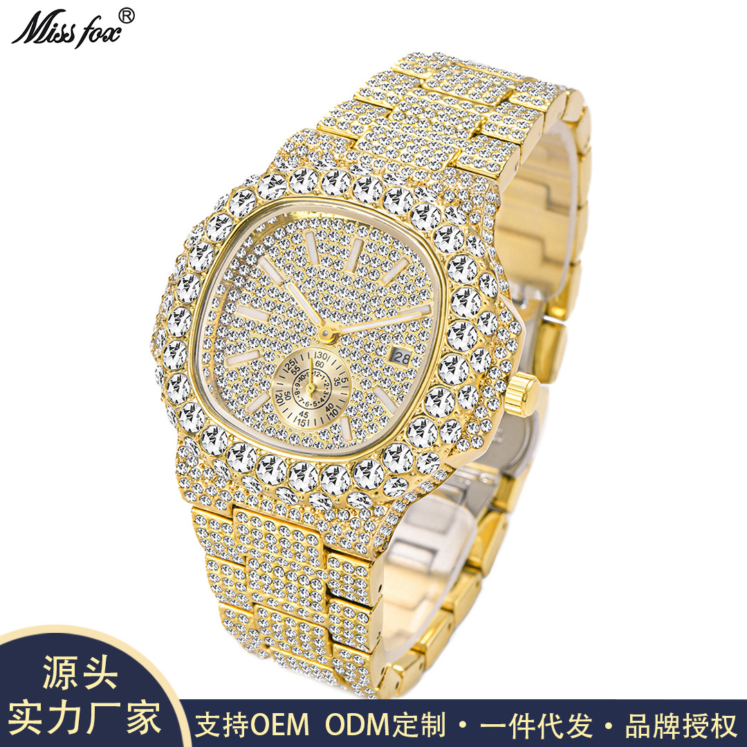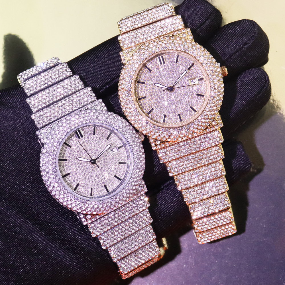 Hip hop Mens Full Diamond Stainless Steel Date Quartz Watch