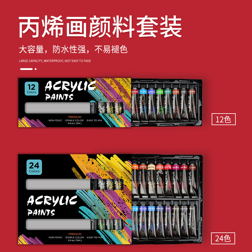 【国境を越えたソース】12mlアルミ管セットアクリル顔料12色耐日焼け絵画落書きdiy美術顔料