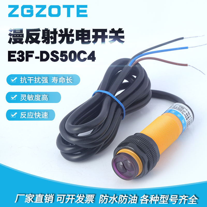 メーカーはE3F-DS50C4直流三線npn常開6v-36v誘導距離50cm光電スイッチを供給している