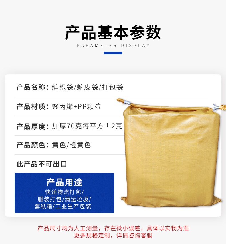 厚い明るい黄色の編み物袋PP大サイズの服装包装袋物流宅配便引っ越し大麻袋蛇皮袋広州