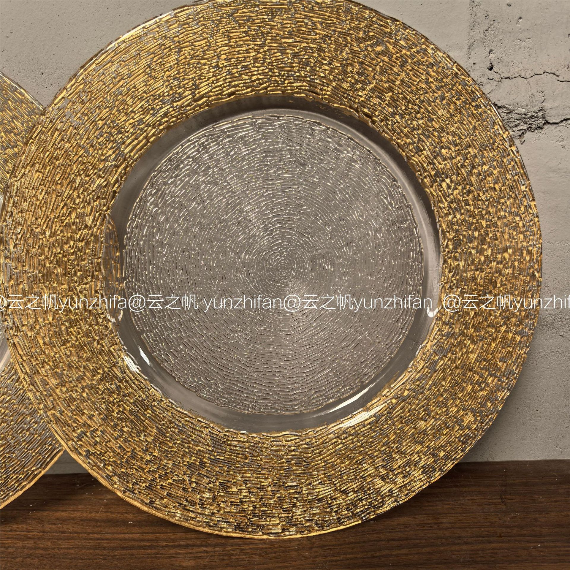 2021年新型金辺ガラス盤ホテルガラス盤ヨーロッパ式メッキ金辺シンプル円形洋食盤