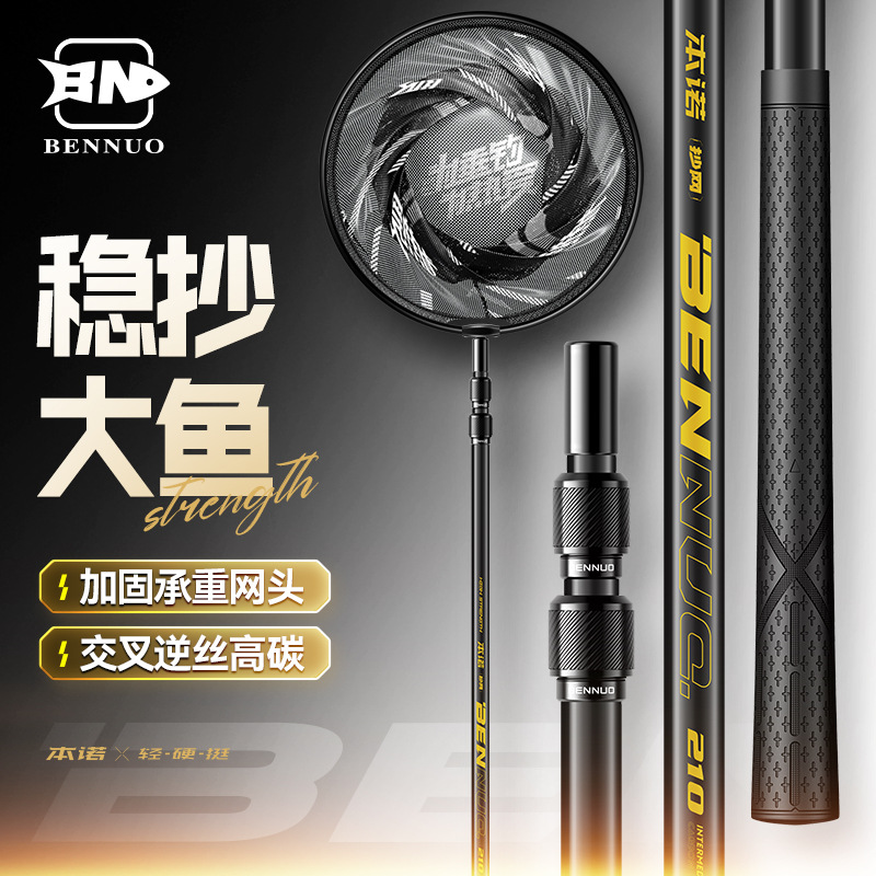 本诺抄网竿便携可伸缩超轻超硬碳素抄网杆钓鱼野钓捞鱼套装抄网兜