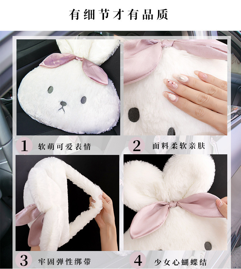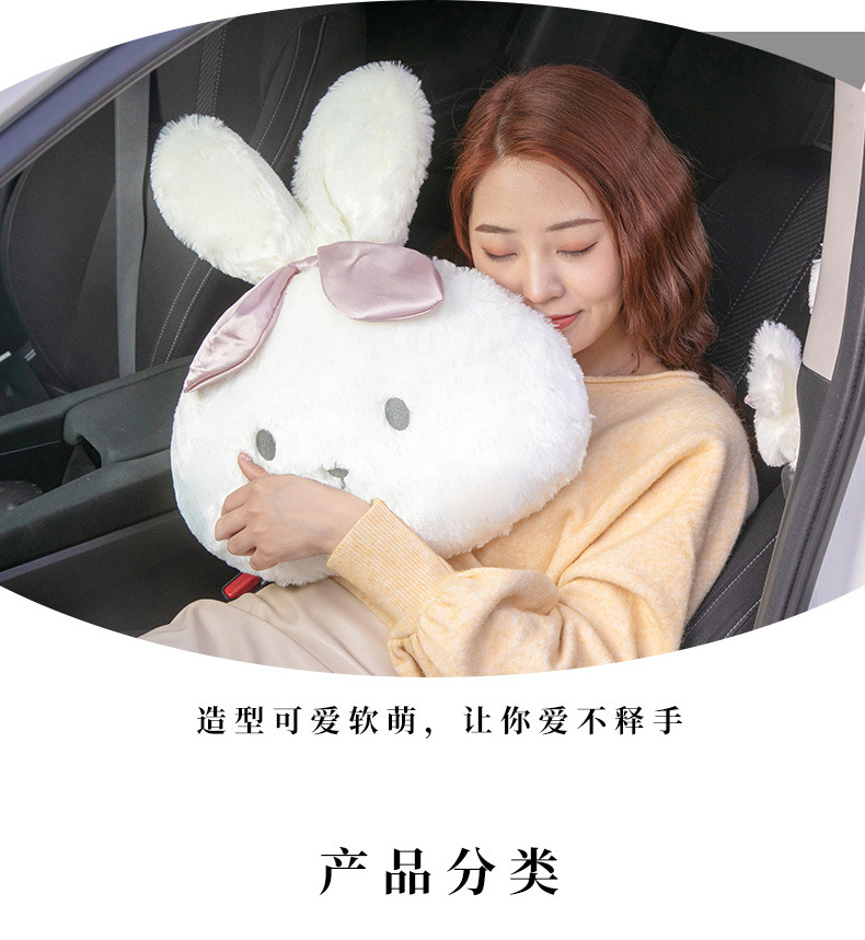 ウサギの車のヘッドレストの首の枕のぬいぐるみの柔らかい快適な車の内装の枕のかわいい漫画の車のヘッドレスト