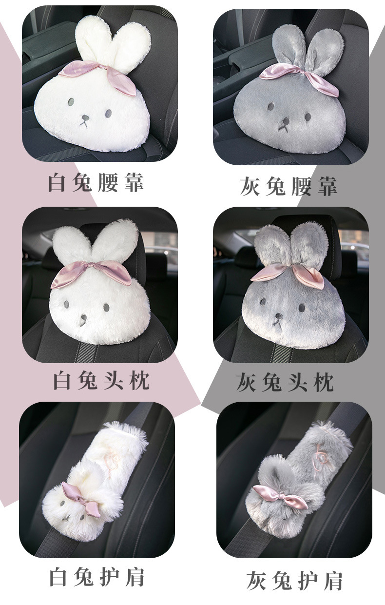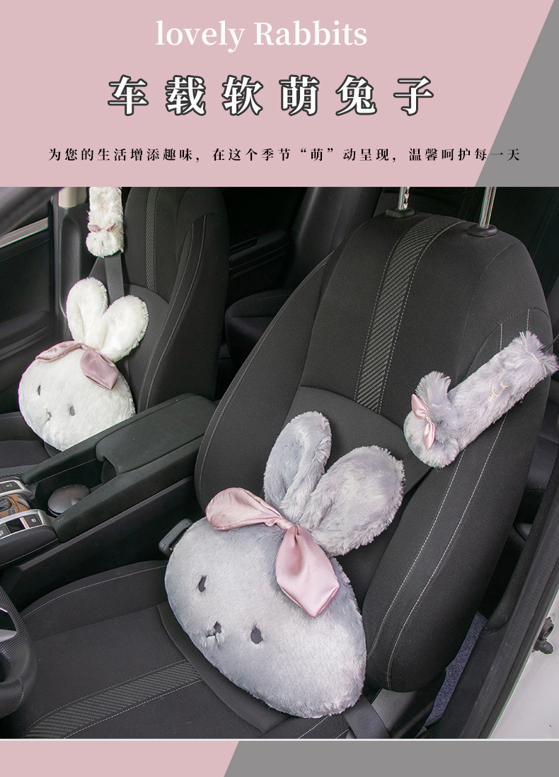 車のヘッドレストと背もたれ、漫画の長毛ウサギの車の首枕と腰の枕、豪華で快適な車のインテリア用品