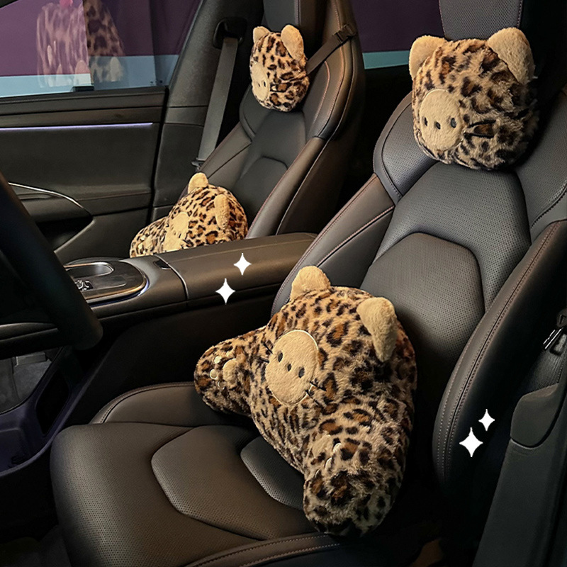 豹纹猫咪汽车头枕腰靠毛绒车载座椅护腰靠枕靠垫可爱卡通护颈枕
