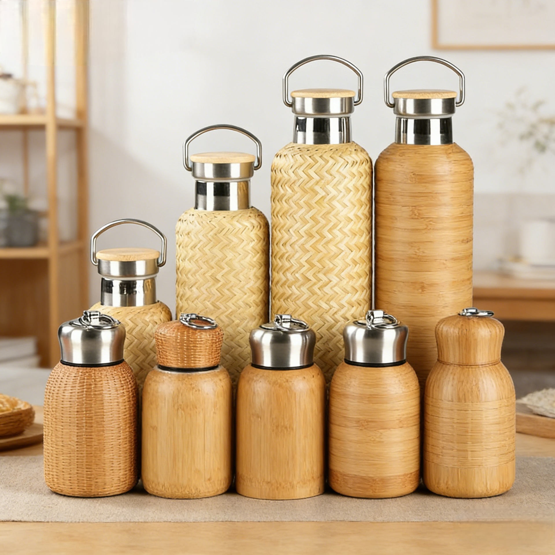 中式竹编保温杯水杯老式热水壶旅行便携热水瓶复古扣丝不锈钢杯子