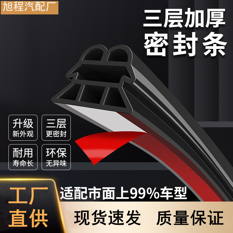 車用シールストリップ 新型アップグレード 三層構造 厚型 防音ストリップ 六穴 車ドア汎用 ドア隙間防塵・騒音低減シールストリップ