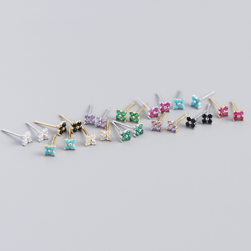 Yhe0297欧米国境を越えたs925純銀ins四葉花甘美で小さなピアスカラー花耳飾り女