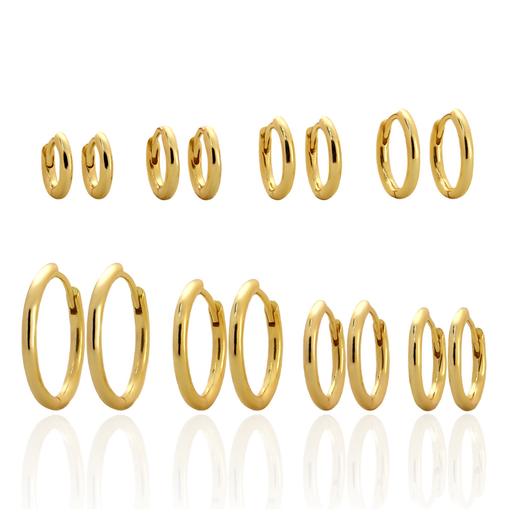 YHE0244 シンプル S925 スターリングシルバー イヤリング 韓国 プレーン サークル ラウンド イヤリング 光沢のある マルチサイズ スタック イヤリング