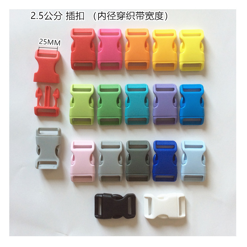 現物25mmカラープラスチックバックルペット項目バックル傘紐ブレスレット編みバックルリュックサック調節安全バックル