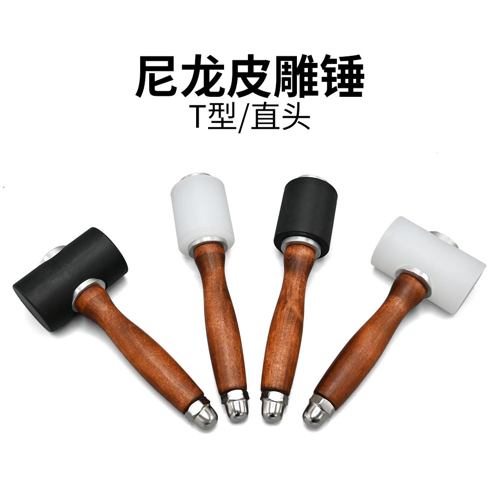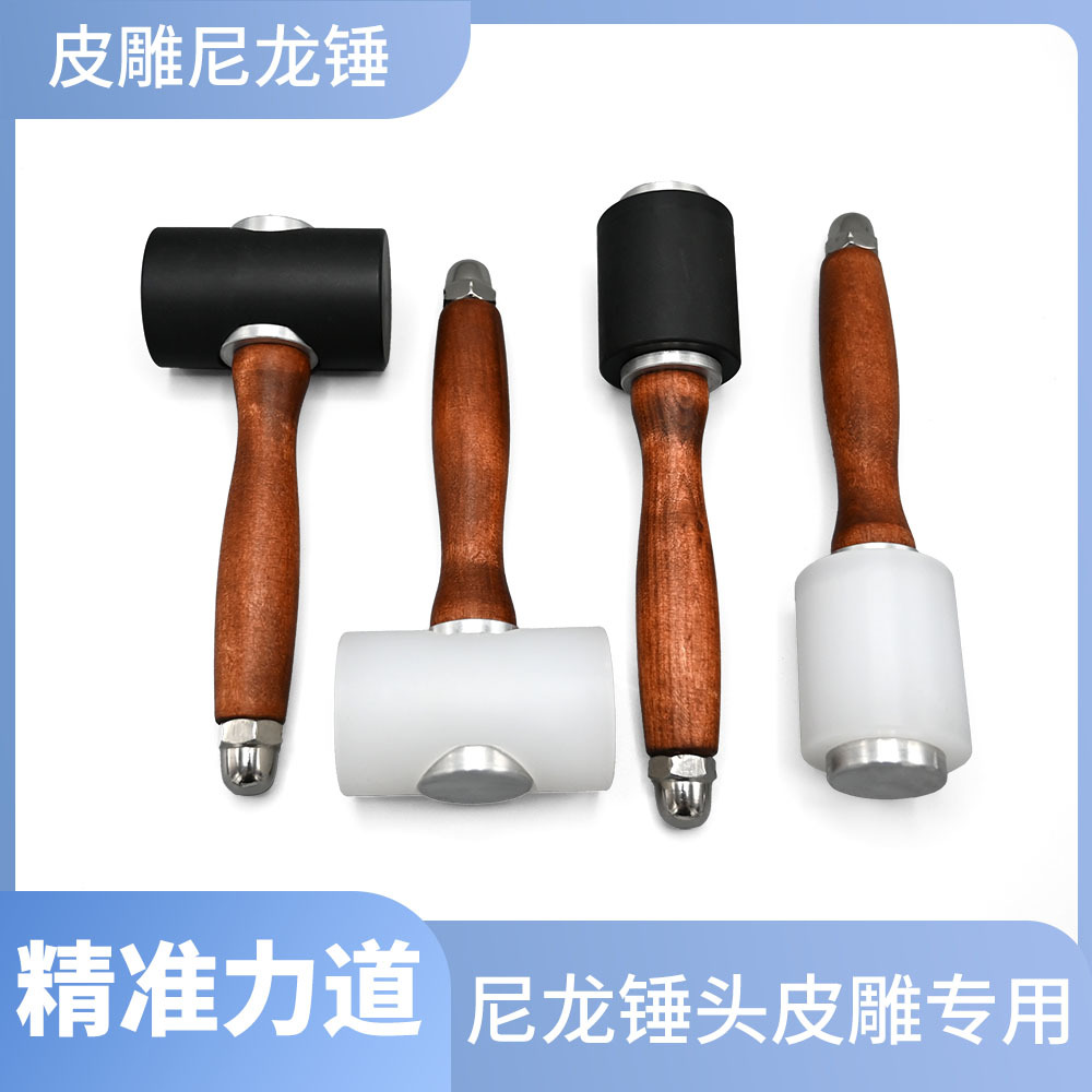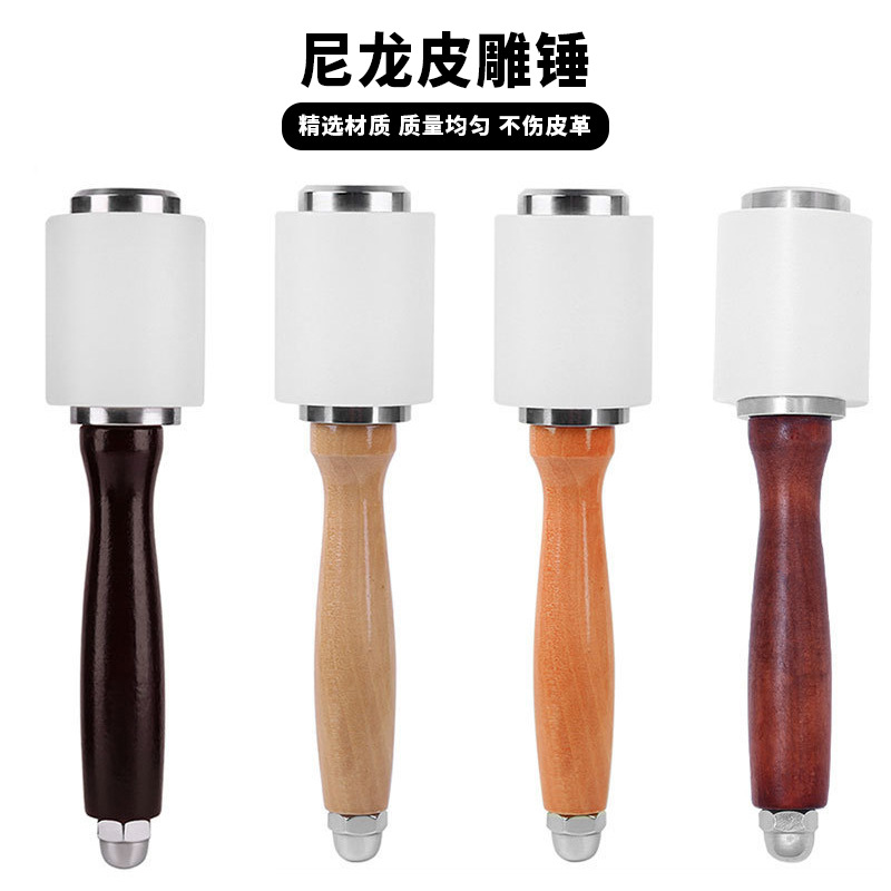 2.尼龙锤的锤头为尼龙材质,无弹性,适合打斩、打冲子、皮雕印花工具等等,尼龙锤头可以很好地保护金属材质的工具。