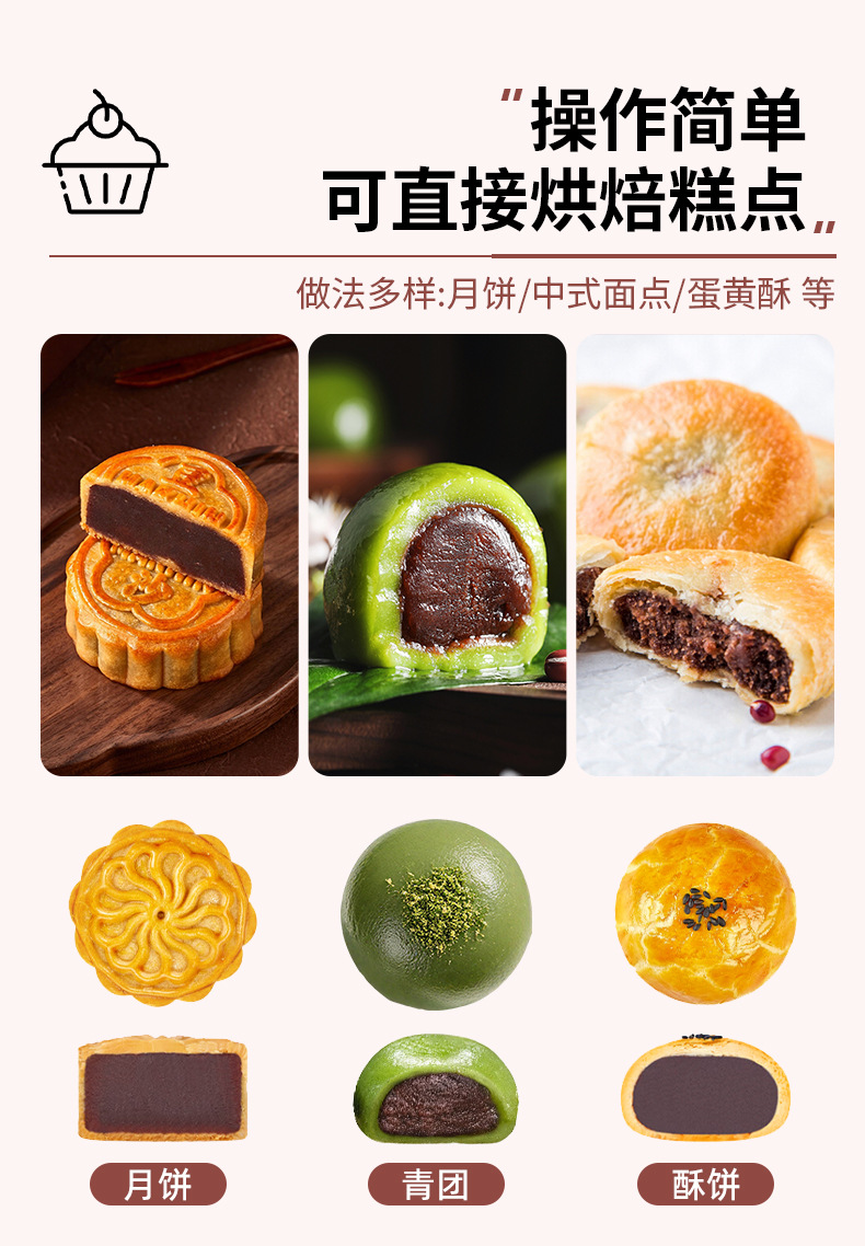 小豆餡、卵黄餡、月餅餡の材料、元宵節用、家庭用、低糖、ベーキング専用。