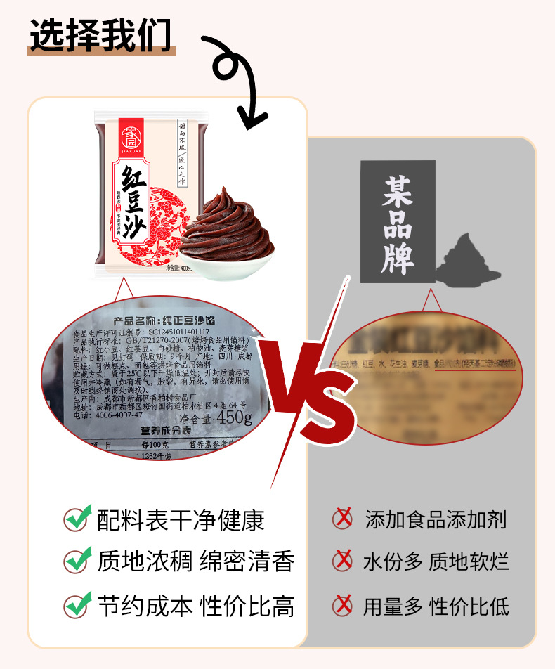 台杰红豆沙馅红豆馅颗粒0添加带皮烘焙商用低甜包子青团面包馅料