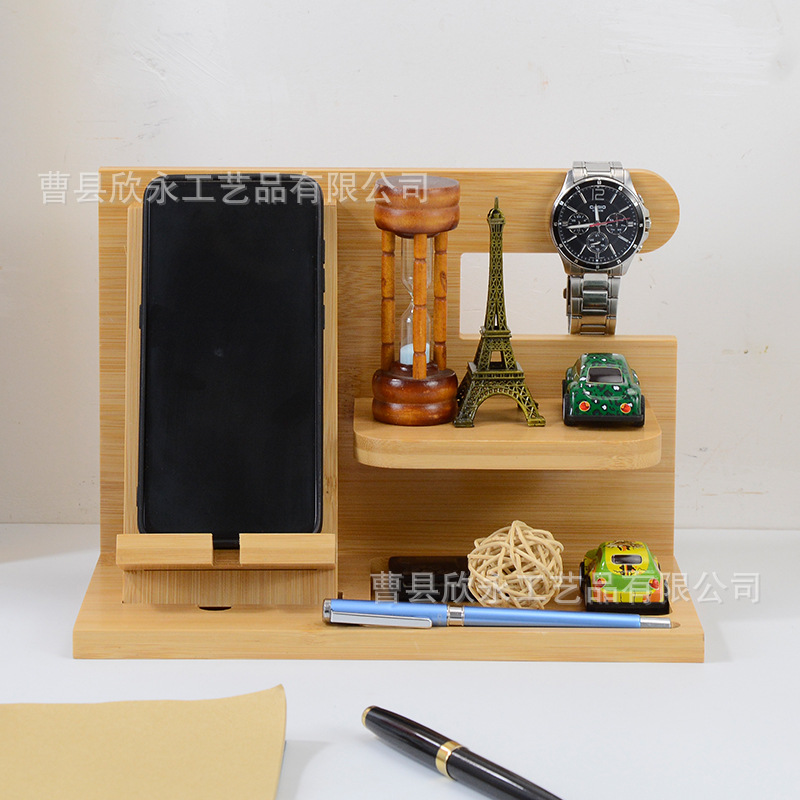 竹製デスクトップ携帯電話充電スタンドクリエイティブメガネ腕時計キーアクセサリー棚財布タブレット怠け者スタンド