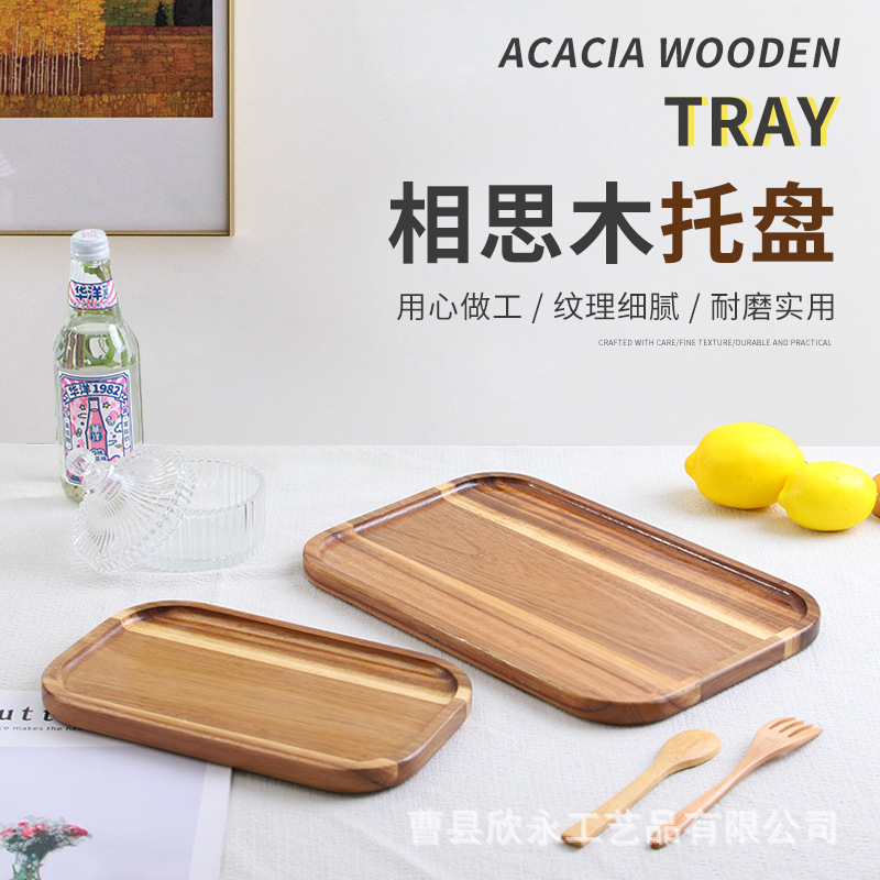 現物アカシア木トレー家庭用長方形楕円パンデザート皿円形皿ケーキ木製トレー