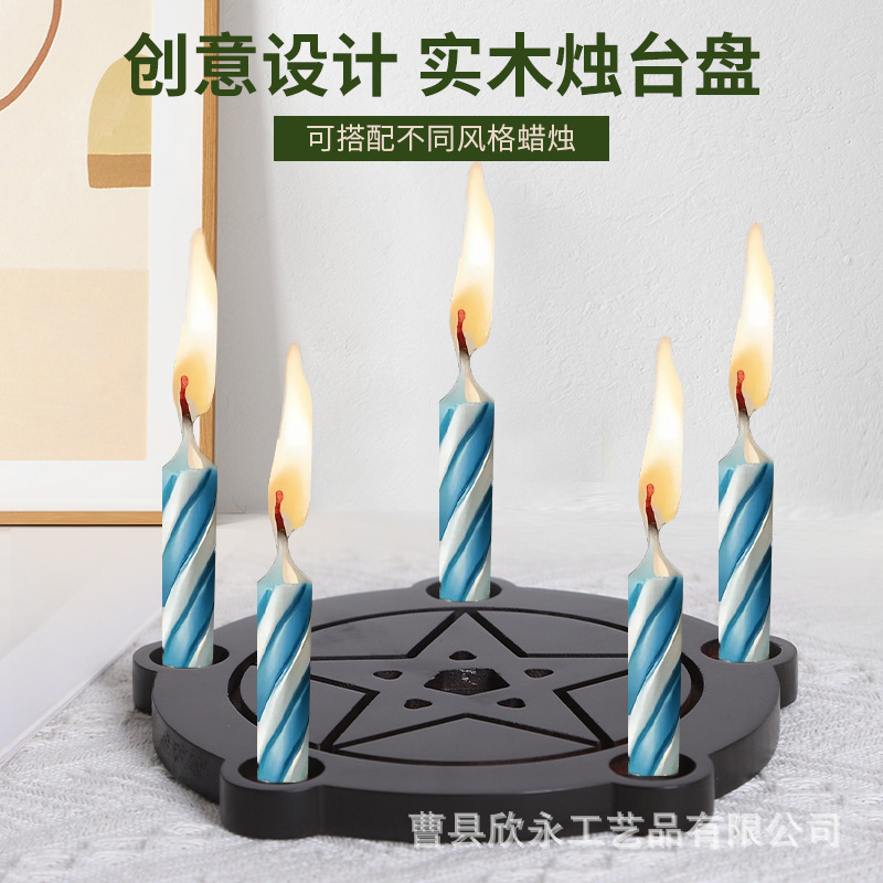 現物の実木五芒星の燭台の皿の儀式の皿は燭台の装飾の皿を浄化します。