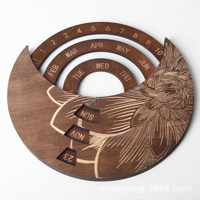 木製万年暦円形シンプル万年暦卓上カレンダー工芸品木製装飾木製書斎創意カレンダー