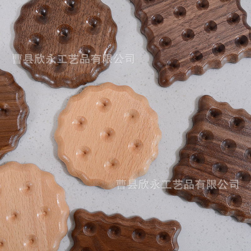 卸売り木製ビスケット形ティーカップマット胡桃木ケヤキマグカップマットレストラン名宿コーヒーカップ断熱マット