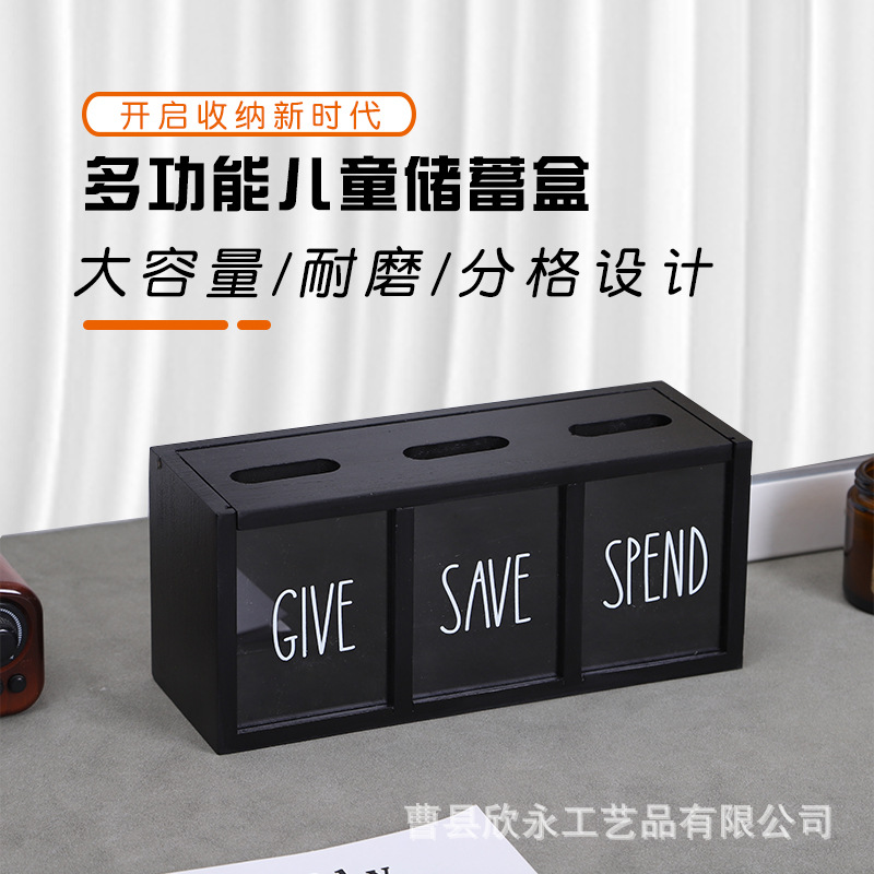 木製貯金箱アクリル分格長方形コイン現金箱実木透明紙幣ドル貯金箱