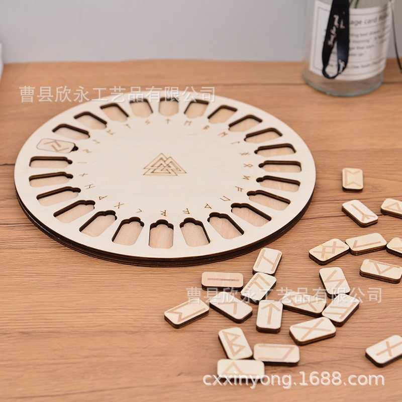 クロスボーダーの木のアルファベットの図形の円盤のセットのWICCAの木の置物のウィッチの儀式の道具