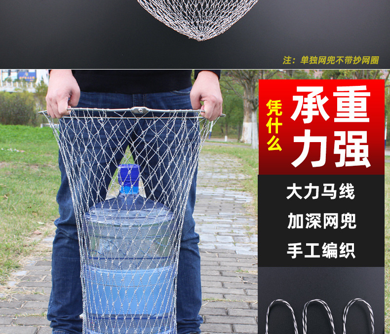 球拍线抄网头灰线大物抄网兜钓鱼捞鱼网大眼小眼大力马编织网头
