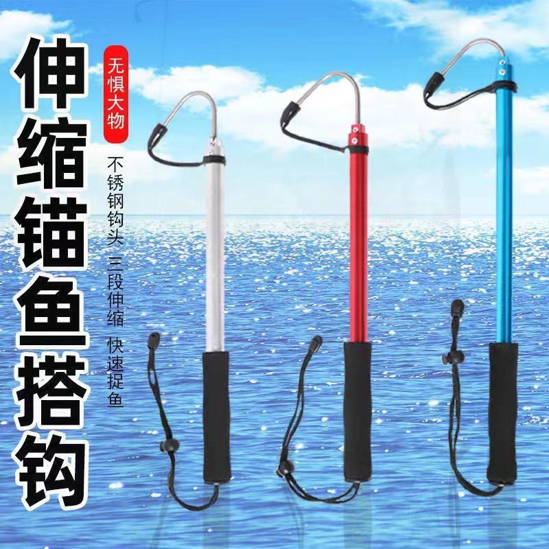 钩鱼器锚鱼搭钩伸缩钩捞鱼钩冰钓船钓刨钩控鱼器不锈