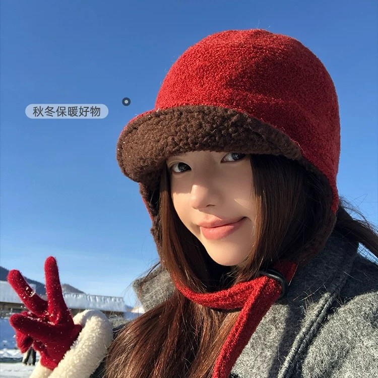 网红ins羊羔绒加厚保暖鸭舌护耳帽子女秋冬季加厚骑车飞行雷锋帽