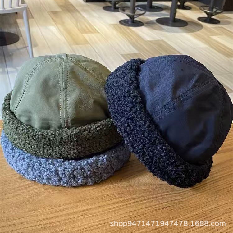 复古羊羔绒无檐地主帽男女秋冬保暖瓜皮帽雅痞街头潮流水手帽