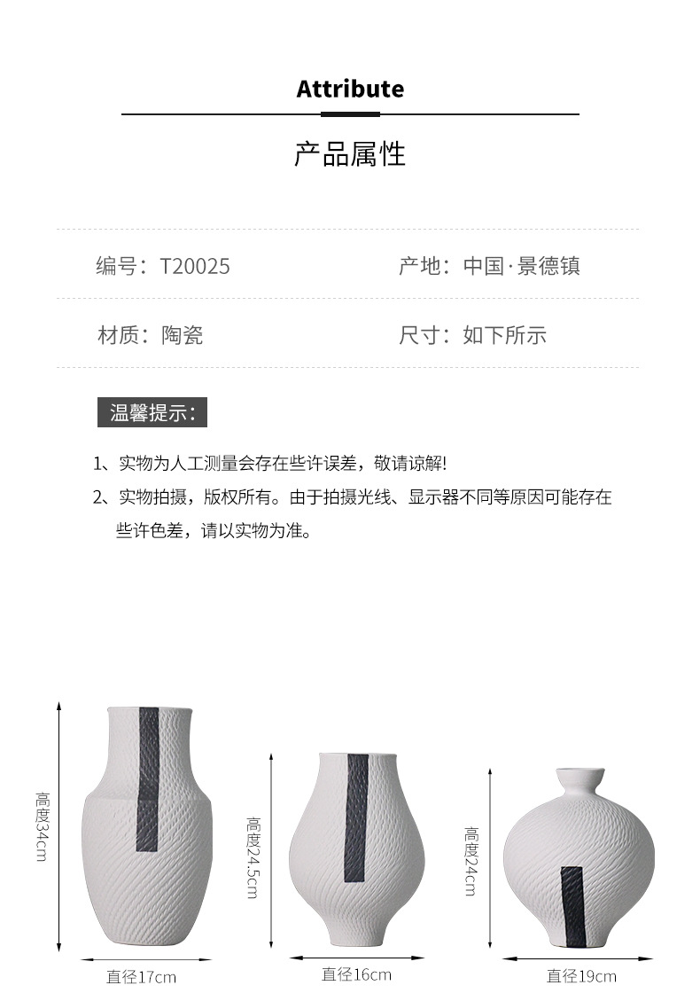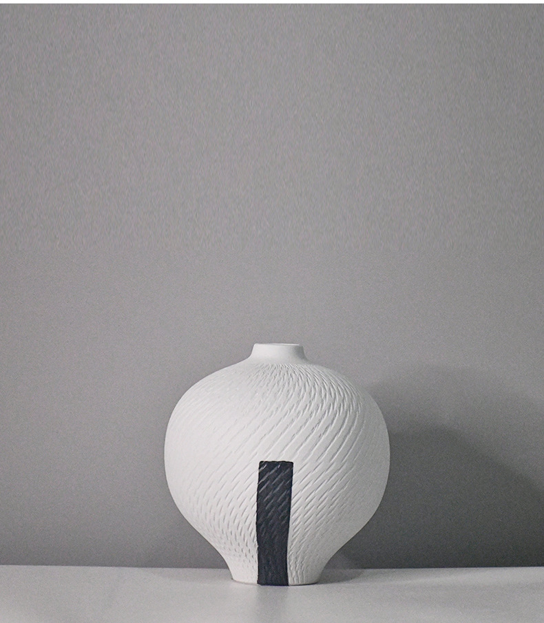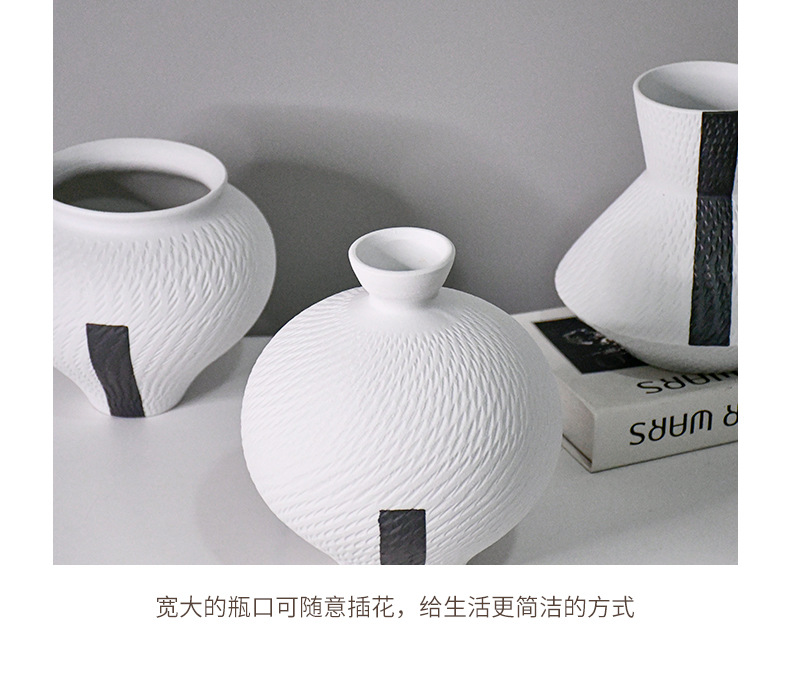モダンきわめてシンプルな黒白セラミック花瓶置物リビング玄関生け花器見本部屋ソフト装飾品置物