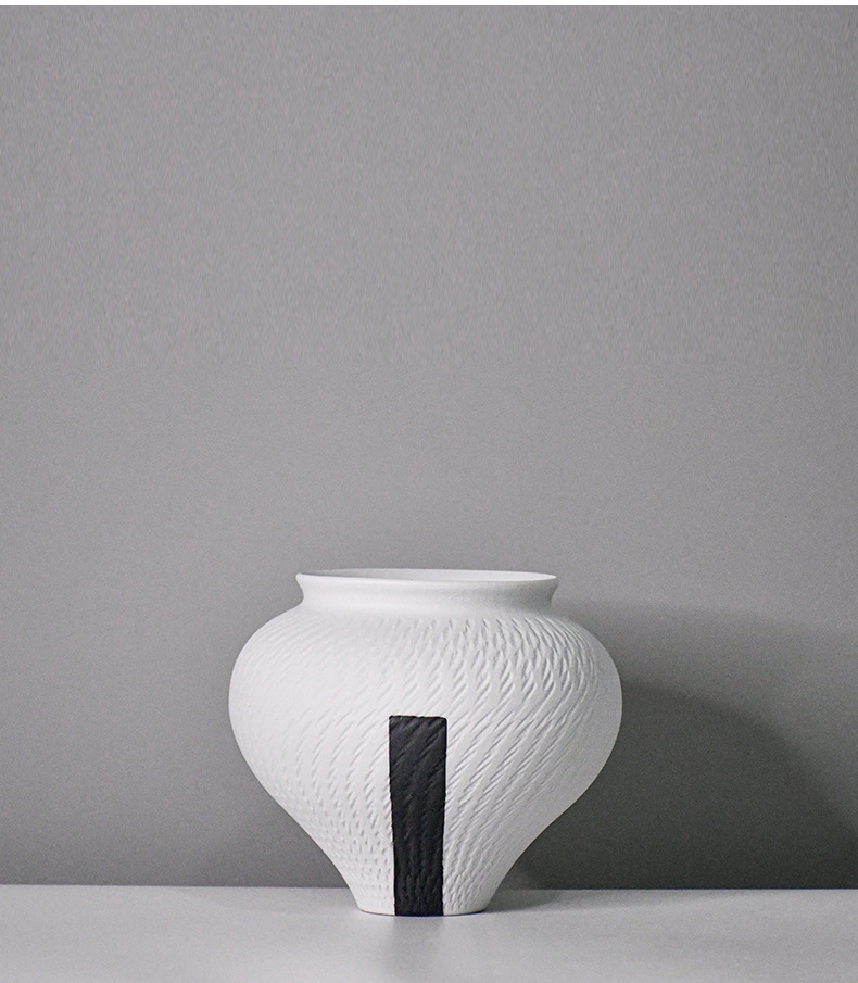 北欧モダンモデルルーム玄関ソフトオーナメントクリエイティブ白黒花挿しリビングドライフラワー花瓶デザイナー置物