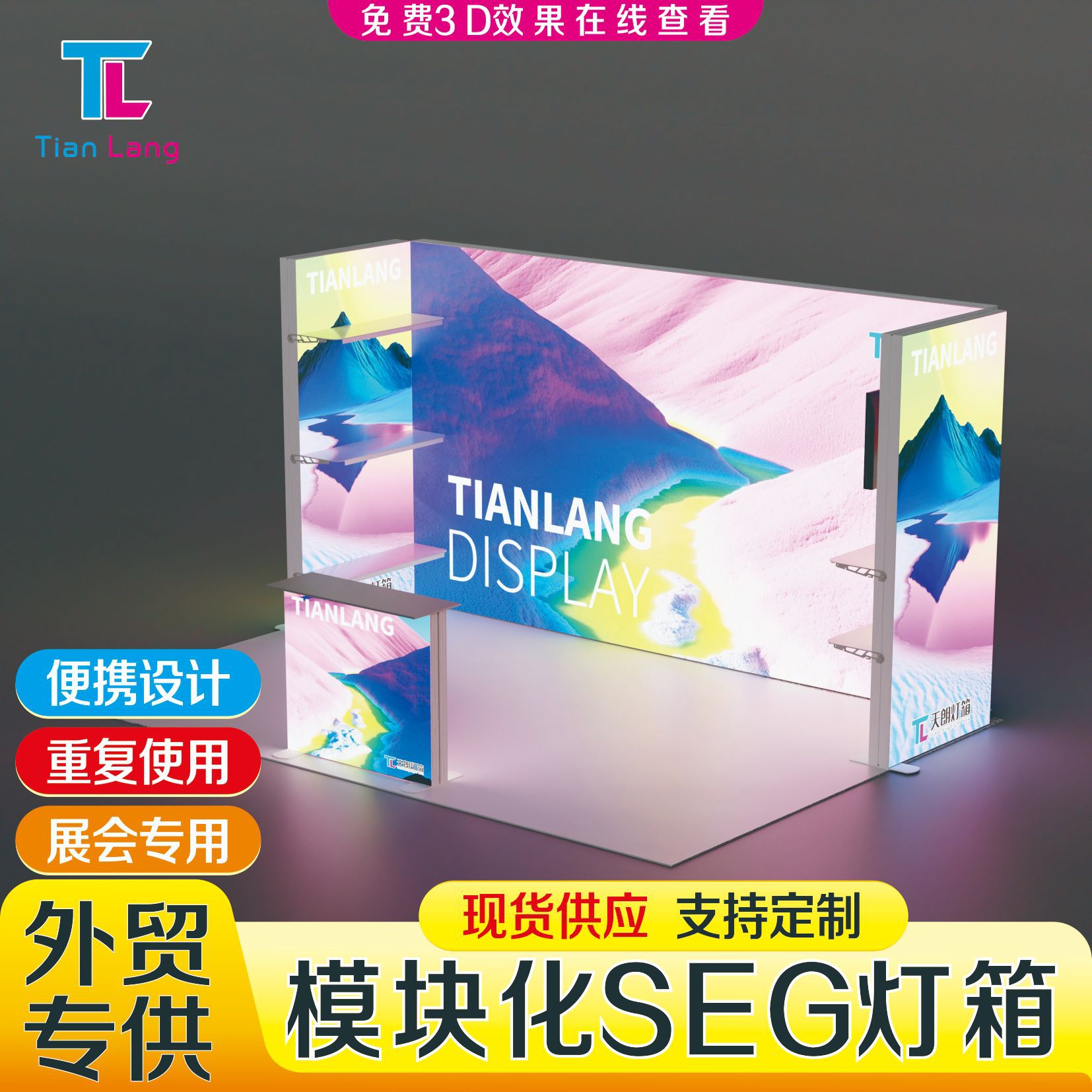 海外展览展会SEG卡布折叠灯箱海外展会展板便携式背景墙展位双面