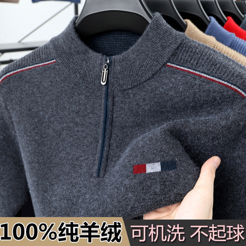羊绒衫男冬季半高拉链领爸爸毛衣加厚保暖针织中年打底套头羊毛衫
