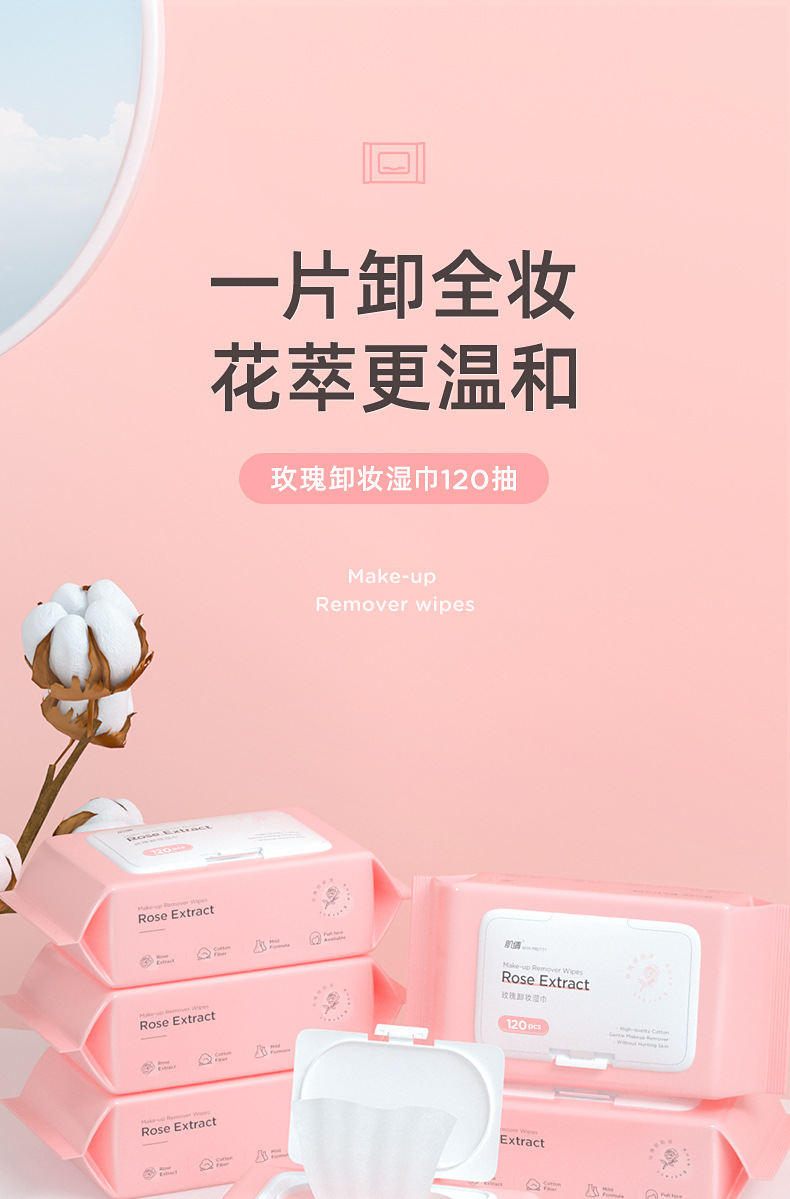 卸妆湿巾批发洁面巾一次性抽取式免洗便携洗面巾120抽卸妆巾湿巾