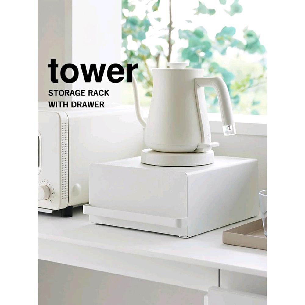 日本式コーヒーマシンの小型家電は引き出し付きの収納棚を持っています。