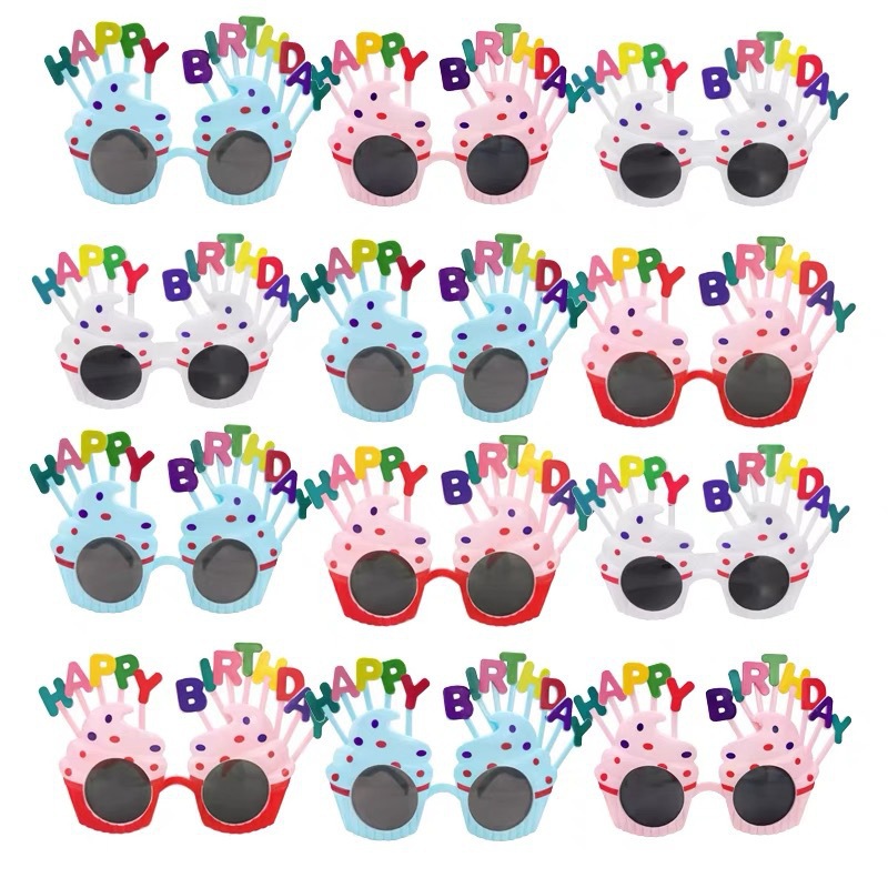 国境を越えた誕生日パーティー用メガネ、写真撮影用小道具、サングラス、ハッピーバースデーケーキ、風船、キャンドル、メガネのメーカー卸売
