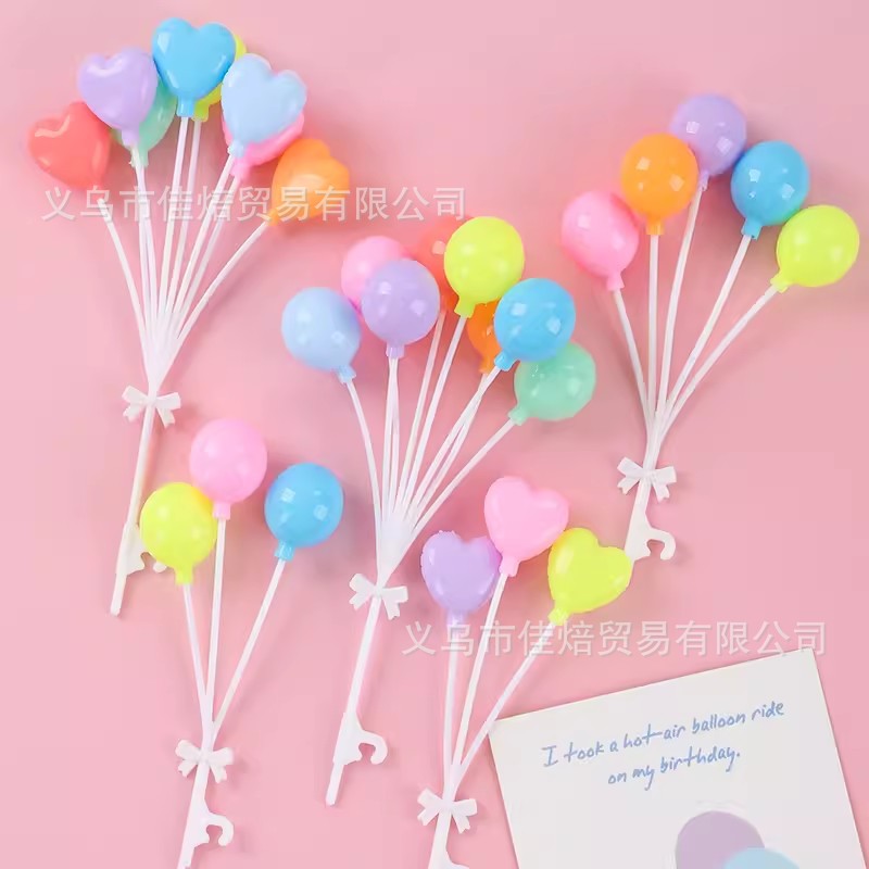 プラスチックの風船のケーキの装飾の置物のマカロンのカラーの愛の束のハート型のボールの子供の焙煎の装飾のプラグイン