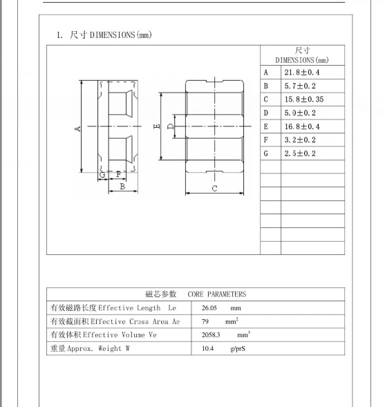 磁芯,铁氧体材料,其几何尺寸等多种多样.为满足各种不同的设计的要求,磁芯的尺寸也是为了适合优化要求而计算的.这些现有磁芯参数,包括诸如磁路径,有效面积,和有效体积等物理参数等。