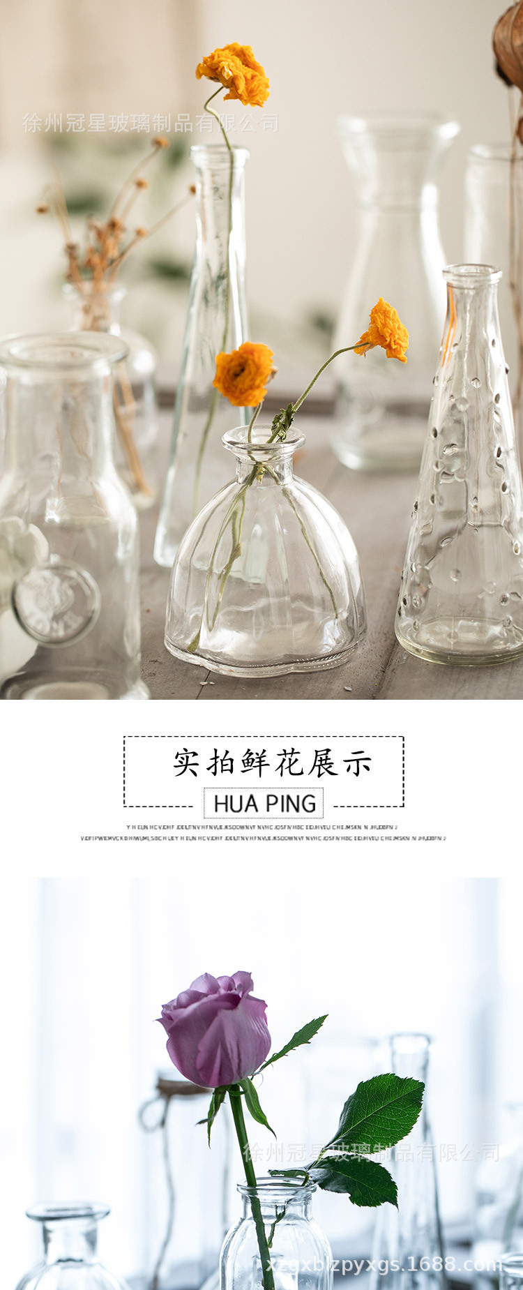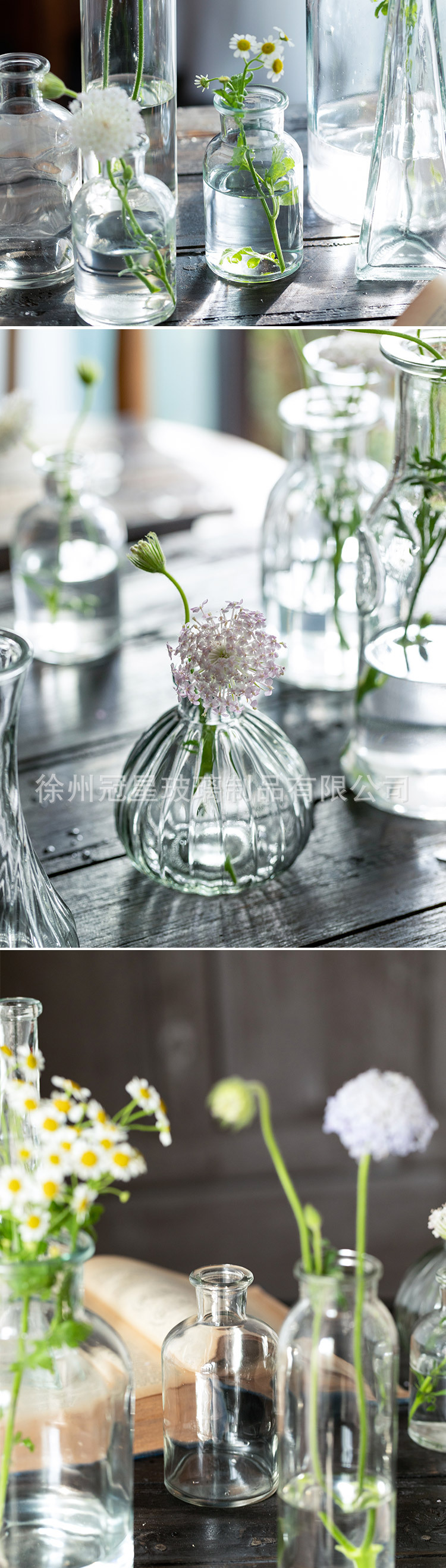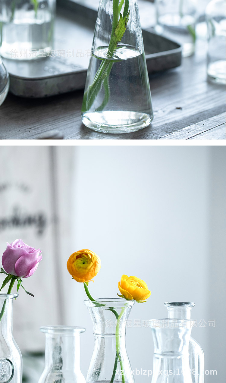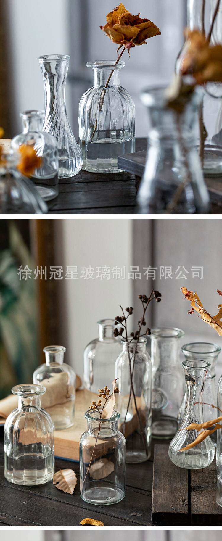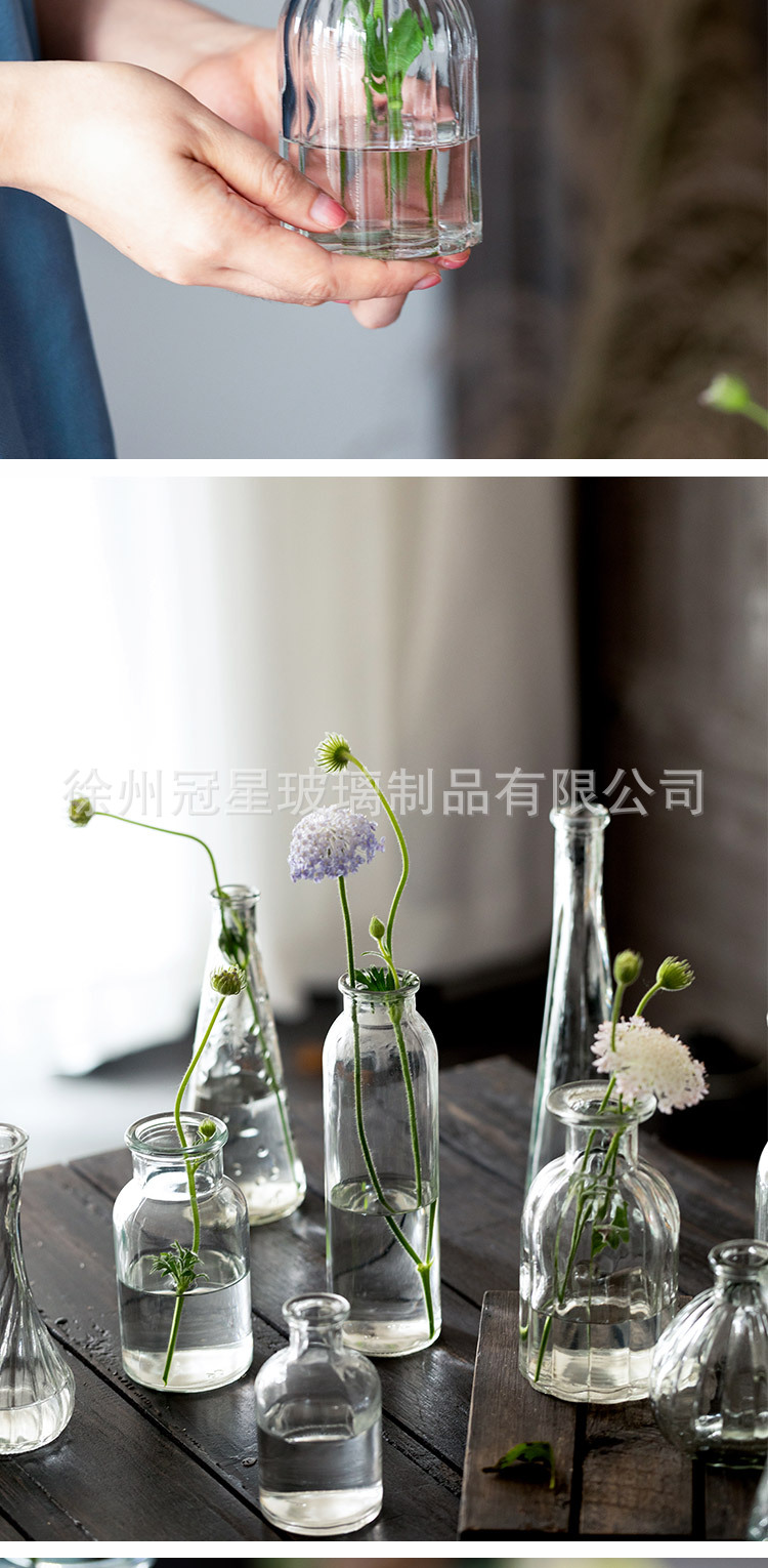 北欧の新しい色ガラス花瓶透明な小さな口の花飾り水耕リビングルームの装飾品工芸品卸売