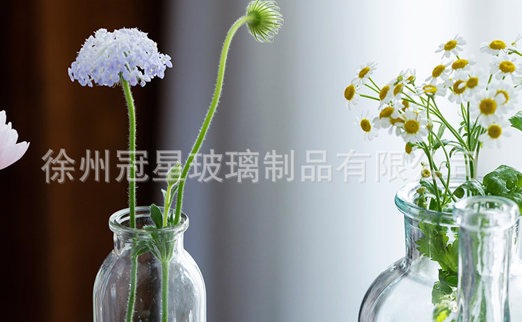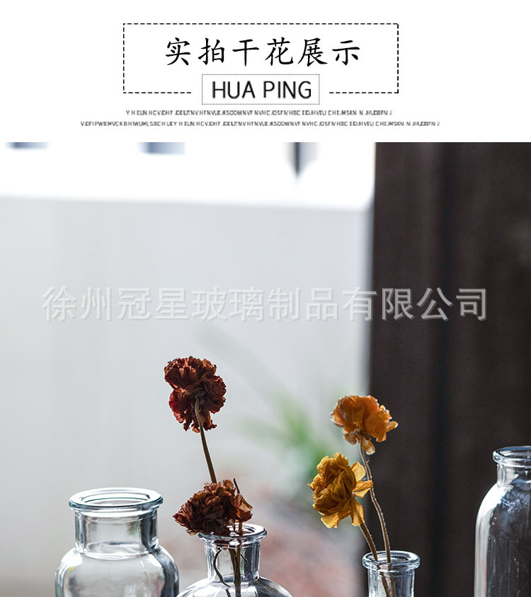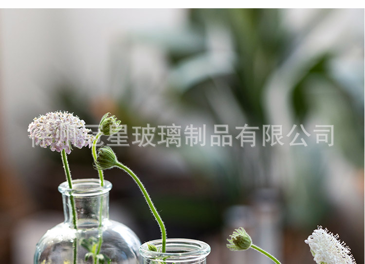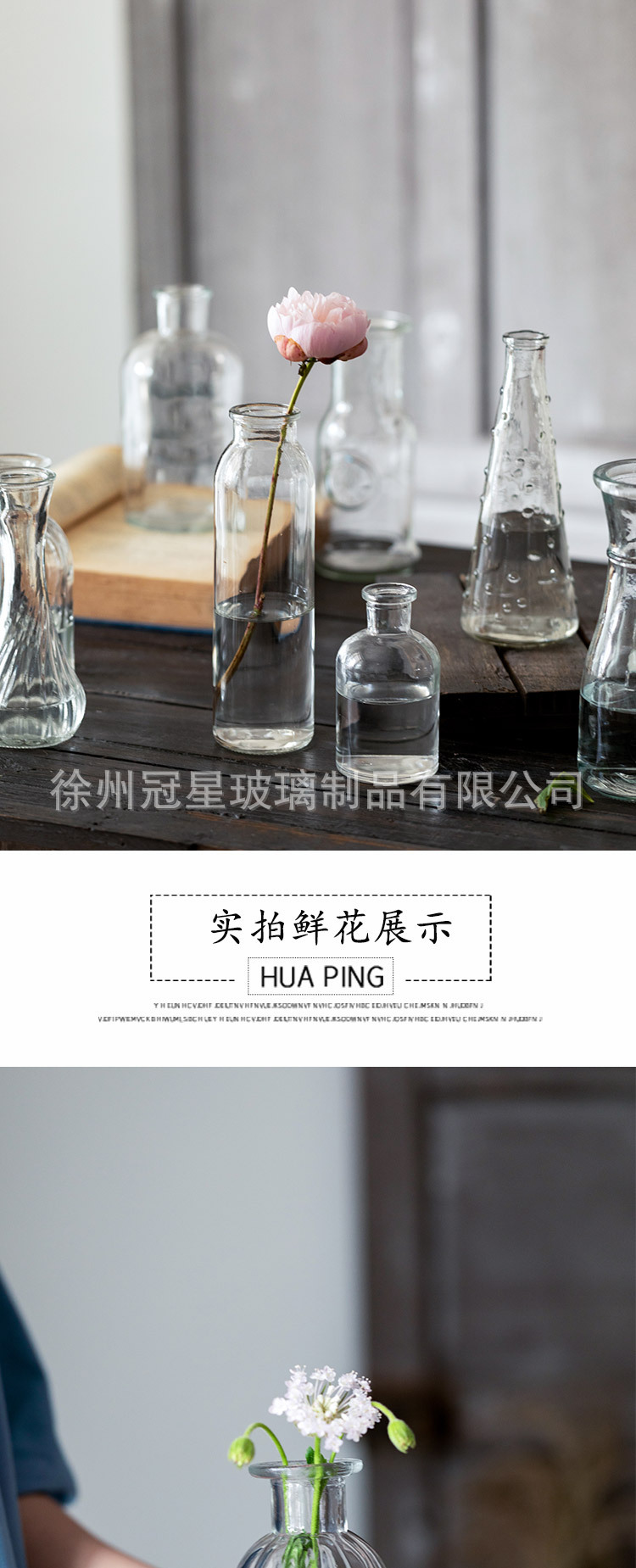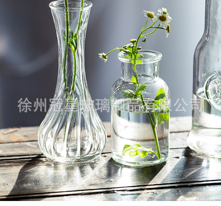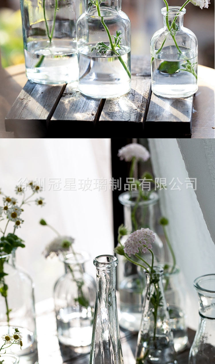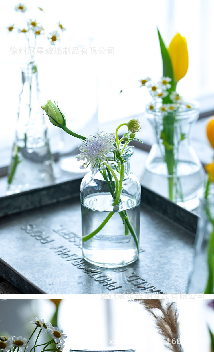 北欧の新しい色ガラス花瓶透明な小さな口の花飾り水耕リビングルームの装飾品工芸品卸売