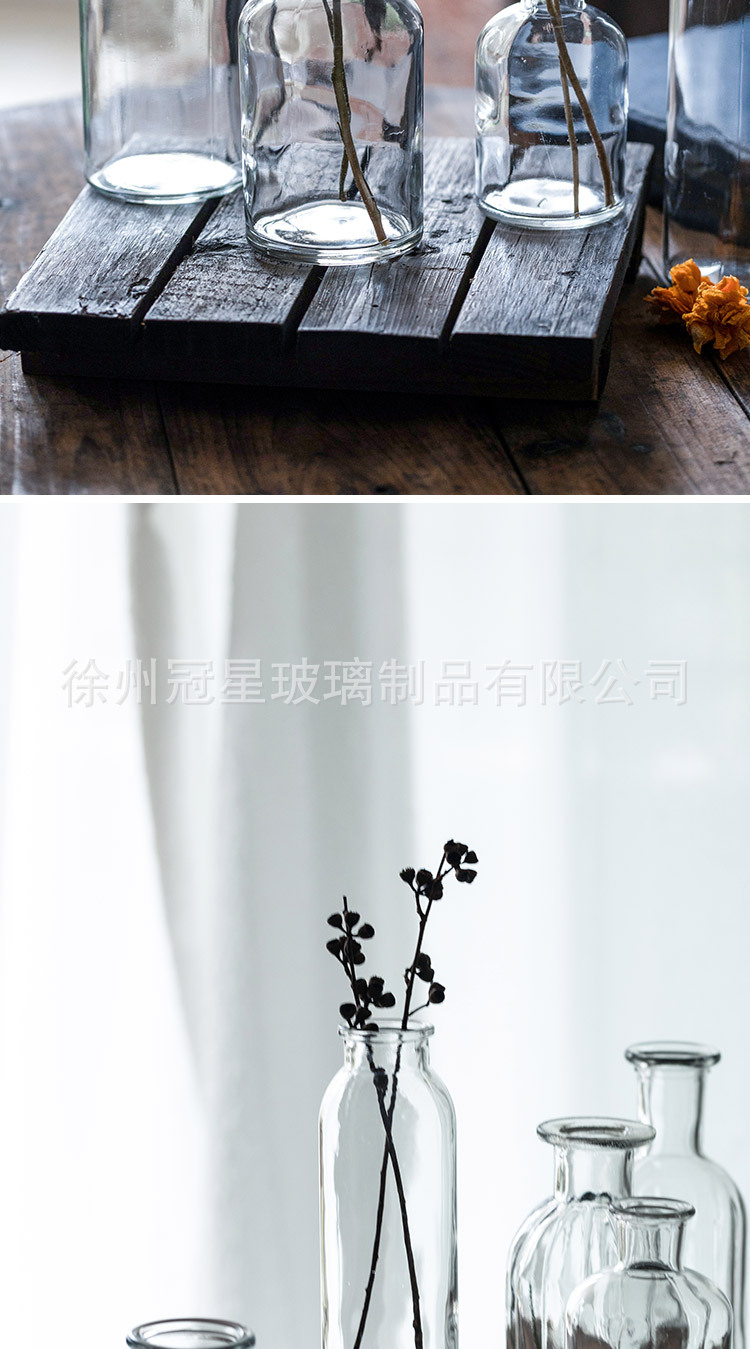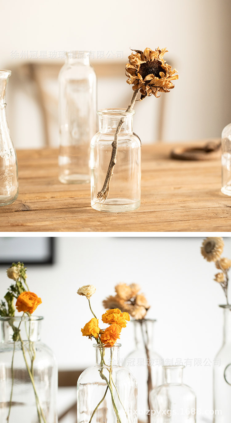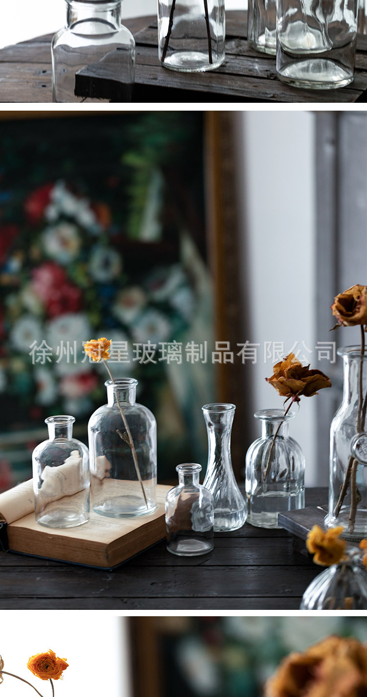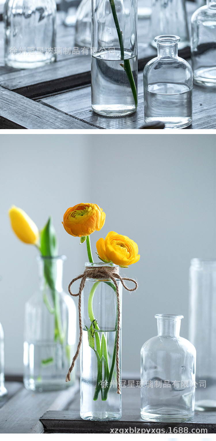 フランスのガラス瓶の小さい花瓶ins風の細い口径の透明な水は水を養って器の皿のネットの赤い復古のミニの置物を育成します。