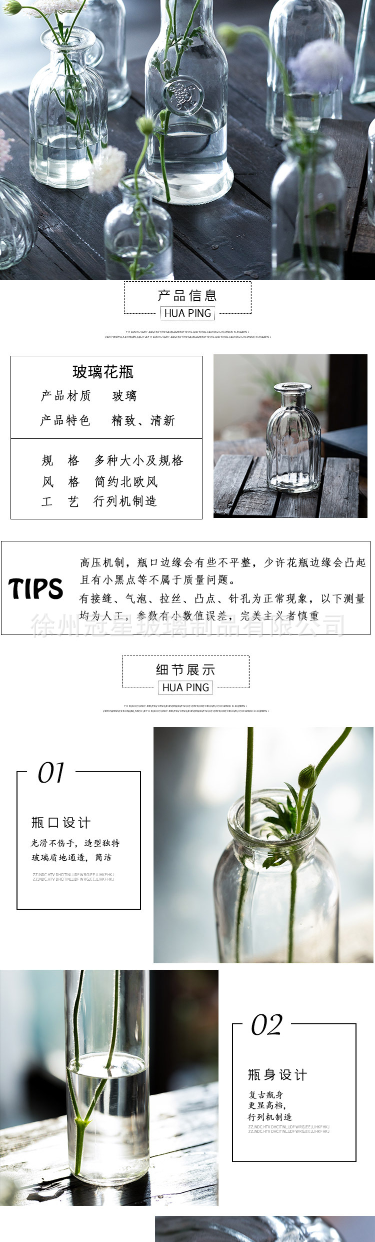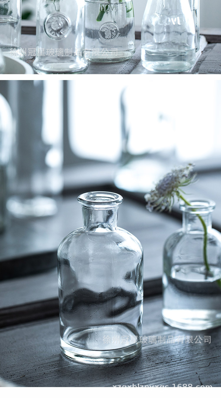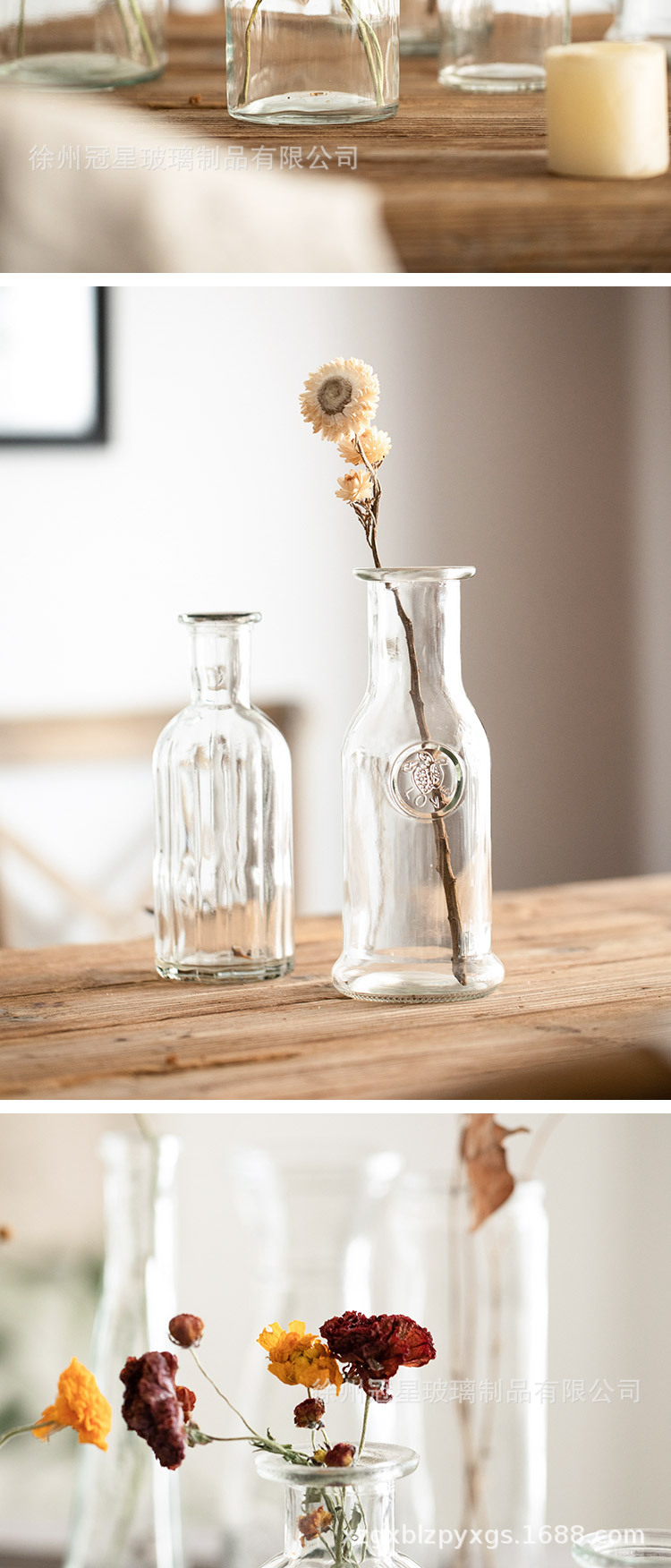 フランスのガラス瓶の小さい花瓶ins風の細い口径の透明な水は水を養って器の皿のネットの赤い復古のミニの置物を育成します。
